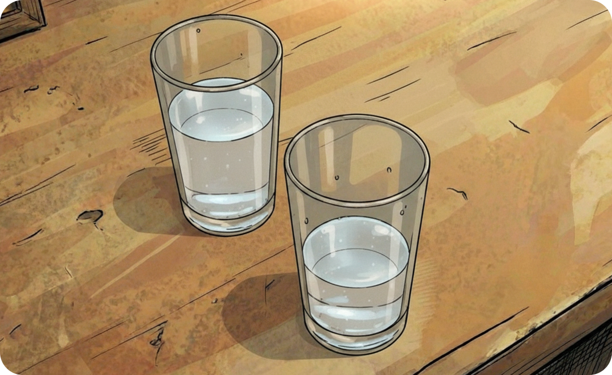 - Wie wirken Anlage und Umwelt zusammen? == Die Anlage bestimmt den *Möglichkeitsraum* (Größe des Glases); die Umwelt bestimmt, wie weit dieser *ausgeschöpft* wird (Füllstand).💡 Jupp meint: